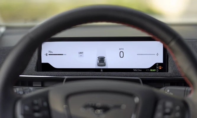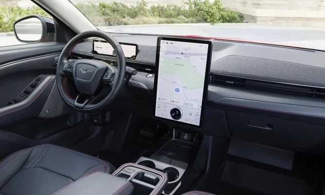 Trái ngược với vẻ ngoài có phần cơ bắp, không gian bên trong của Mustang Mach-E là sự kết hợp hoàn hảo giữa sự tối giản và công nghệ cao.
