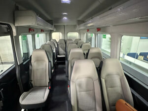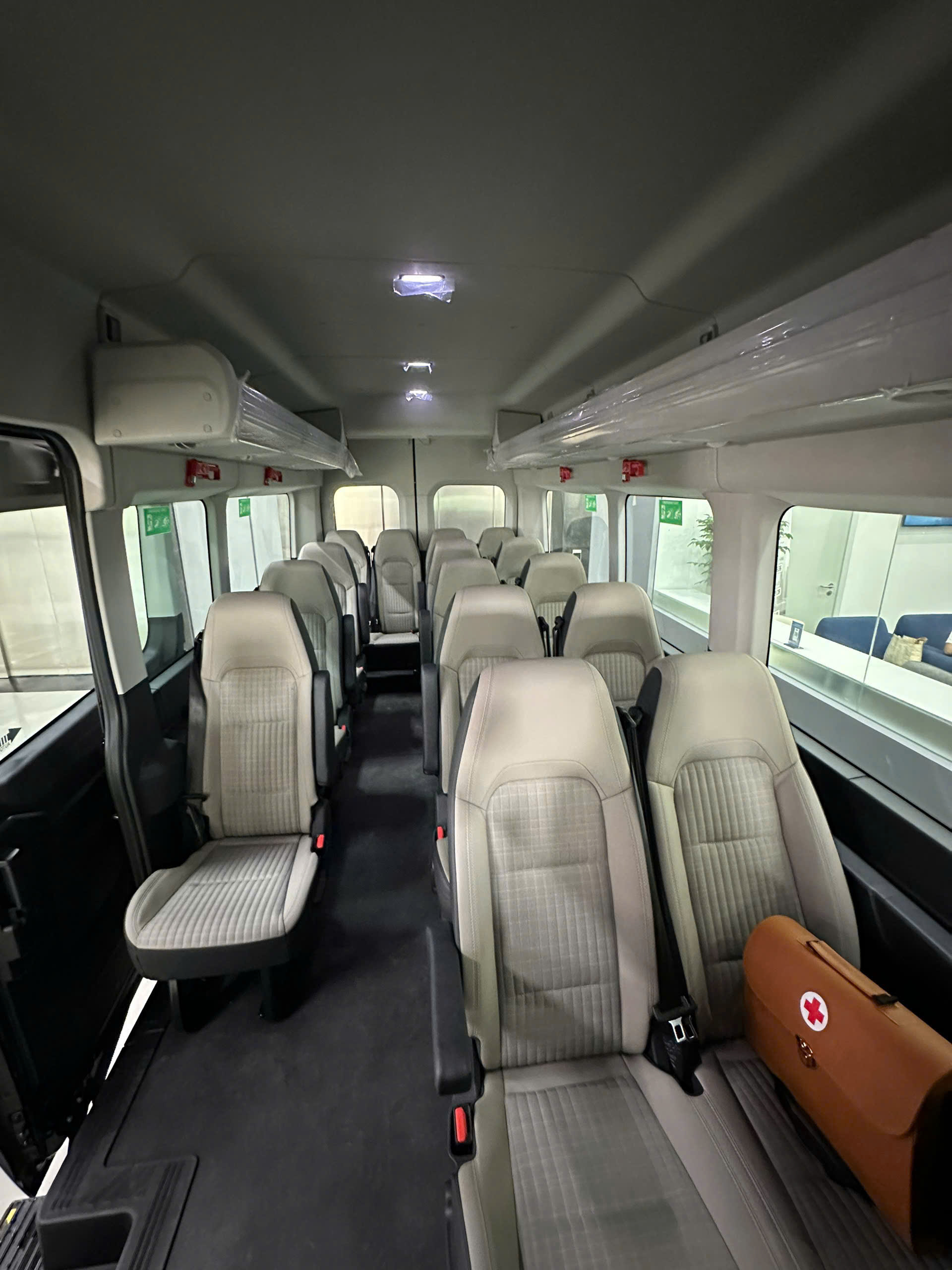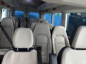 Ford đã khéo léo sắp xếp 18 vị trí ghế ngồi theo sơ đồ tối ưu hóa lối đi trung tâm. Hành khách có thể dễ dàng di chuyển từ đầu xe đến cuối xe mà không gặp trở ngại. Ghế ngồi được bọc da cao cấp, có độ ngả lưng tốt và tích hợp tựa đầu êm ái, giúp giảm thiểu mệt mỏi trên những hành trình xuyên tỉnh.