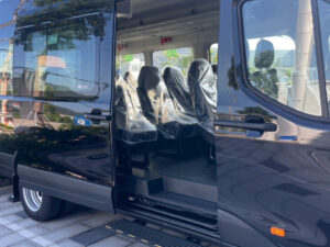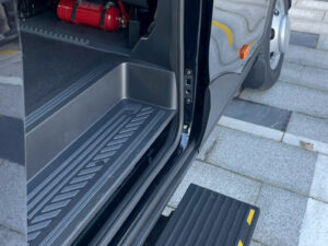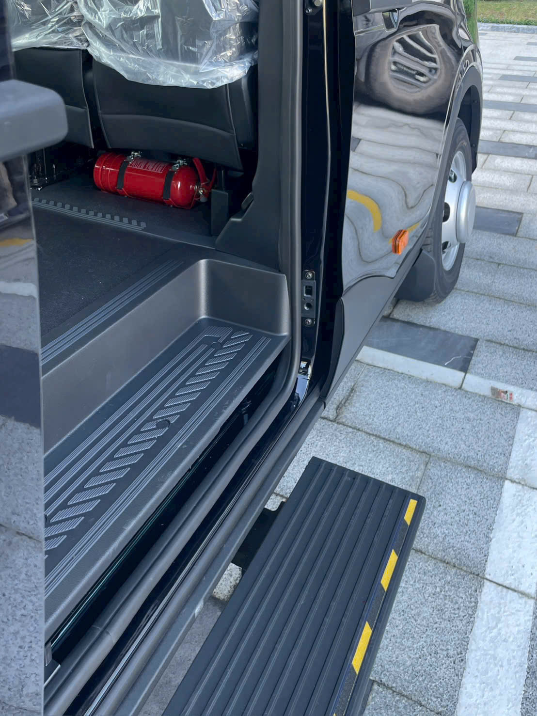 Bậc bước chân điện tự động: Khi cửa lùa mở ra, bậc bước chân điện sẽ tự động đưa ra, tạo sự thuận tiện tối đa cho hành khách. Khoảng sáng gầm và bậc bước chân được tính toán kỹ lưỡng để việc lên xuống xe diễn ra nhẹ nhàng nhất.