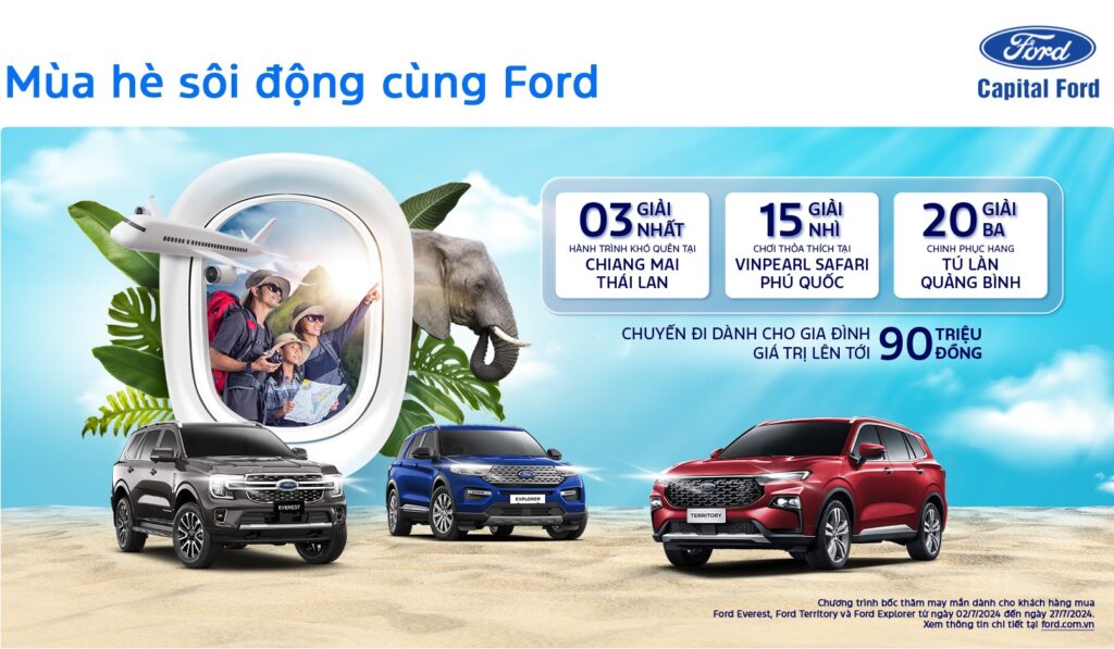 “Mùa hè sôi động cùng Ford” là chương trình dành cho tất cả các khách hàng tham gia ký hợp đồng và đặt cọc mua xe Ford Everest/Territory/Explorer sẽ cơ hội bốc thăm vô vàn phần quà giá trị.